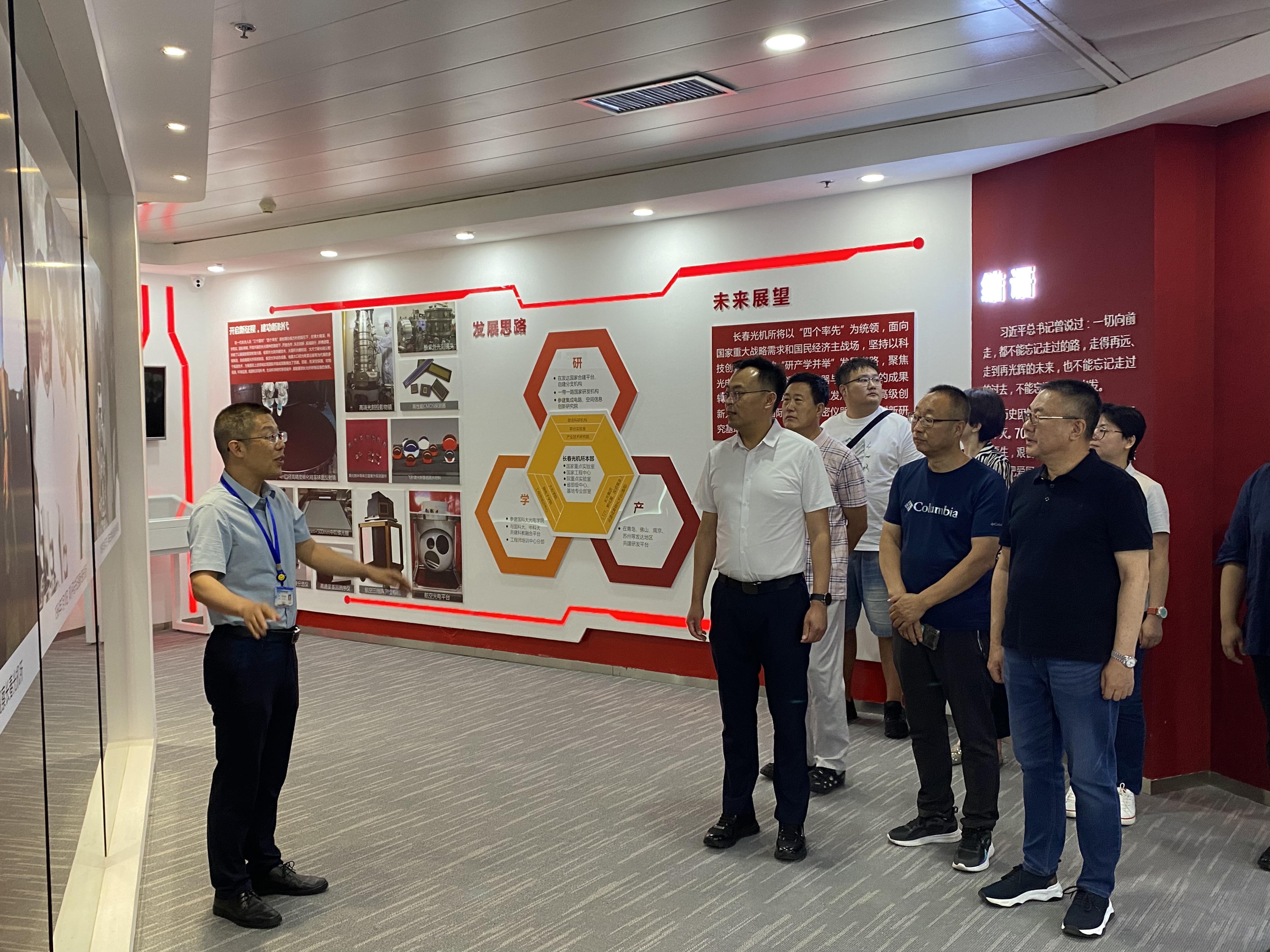 研学人员先后参观了赤子丹心展厅、图像处理技术研究部、园区4mSiC反射镜以及博大楼。通过工作人员对实验设备运行情况和最新科研成果的展示,大家对长春光机有了进一步了解,感受到作为新时代科学家团队,在党的引领下,不断培养和积累了能吃苦、能战斗、能攻关、能奉献的“载人航天精神”,长春光机所在以科技创新为核心的“研产学并举”发展道路上取得了大量科研成果,为满足国家重大战略需求、为我国向着科技强国目标迈进作出了突出贡献。中科院长春光机所被誉为新中国光学事业的摇篮,是国家战略科技力量的重要组成部分,代表了国家在光学科技创新领域的最高水平。