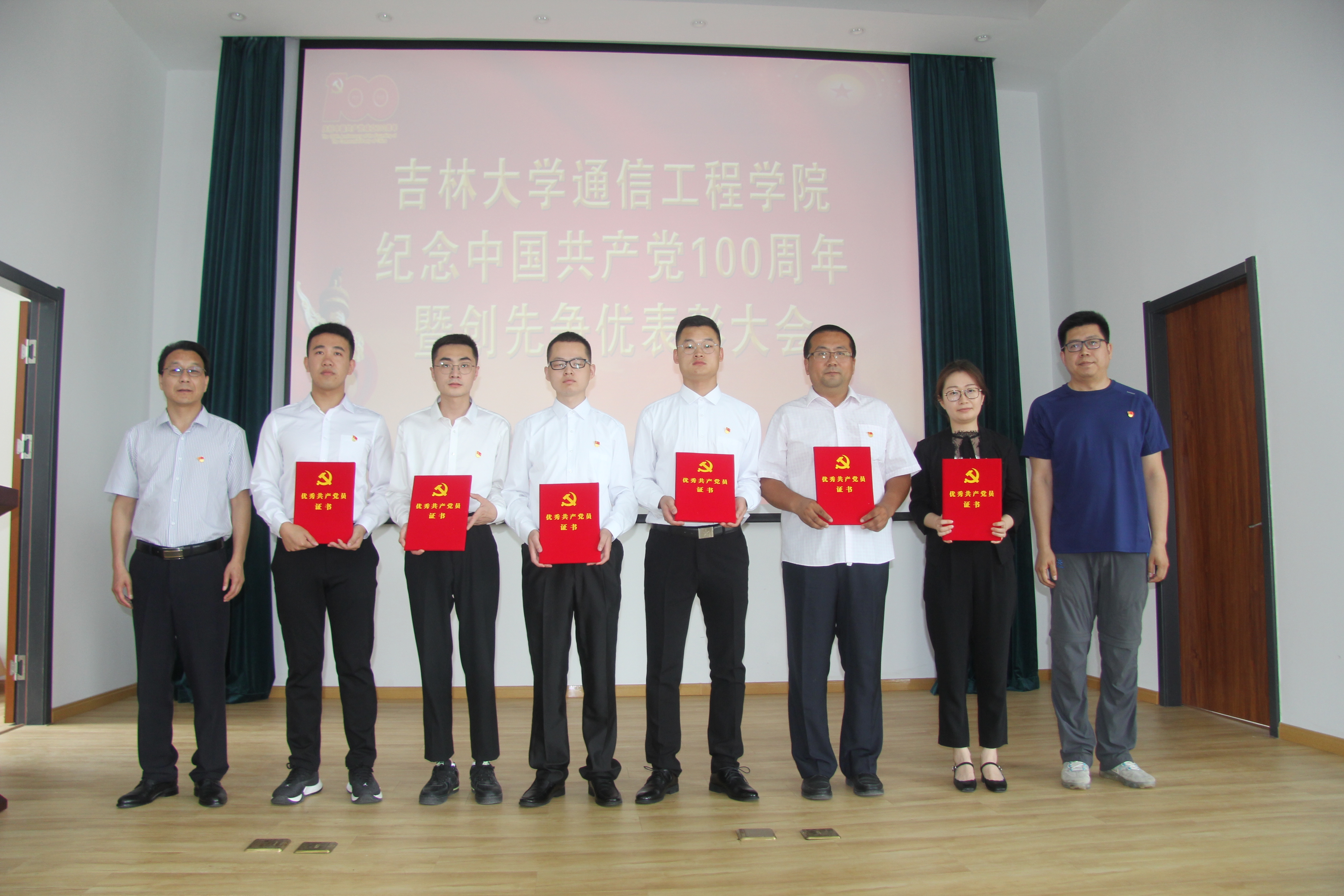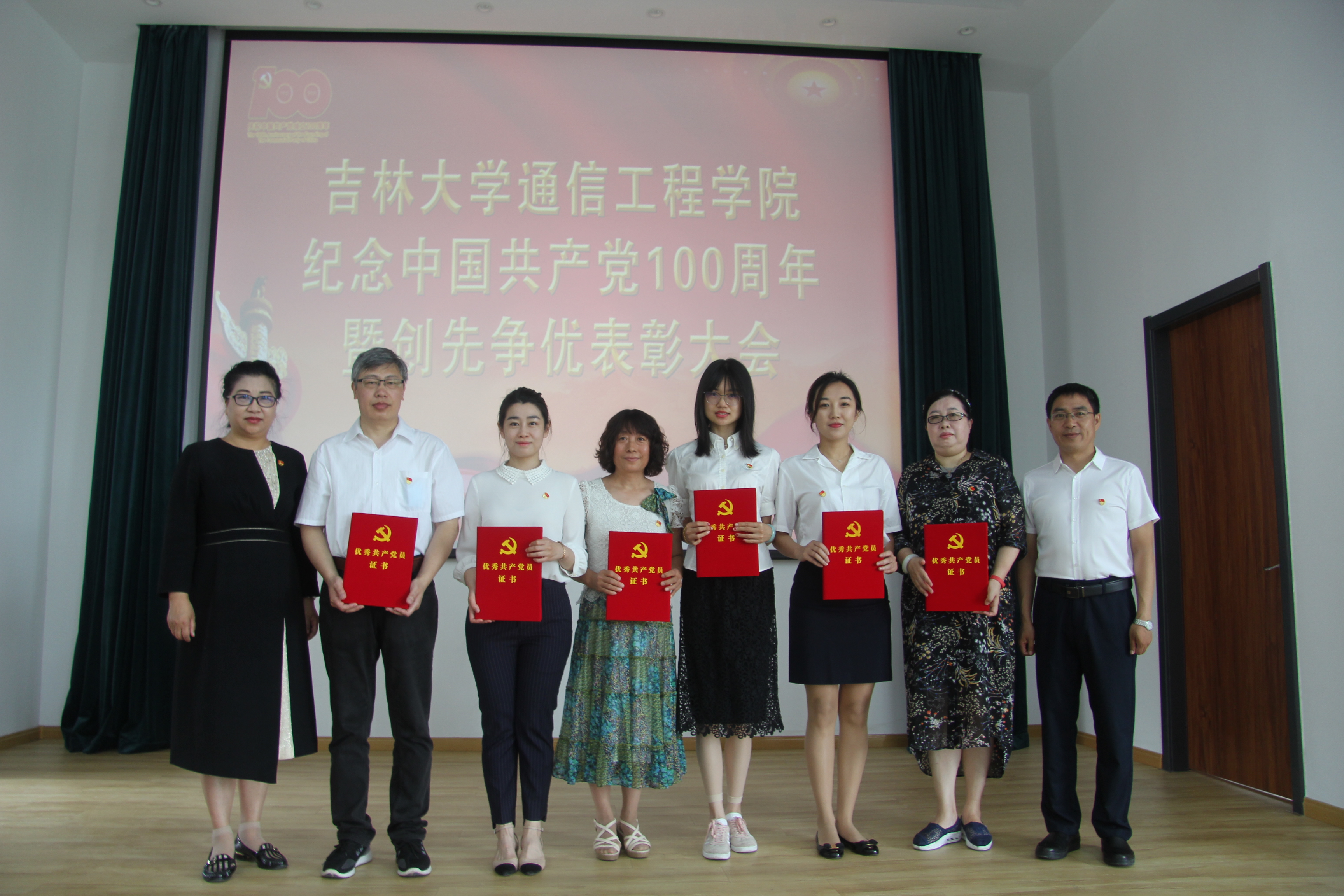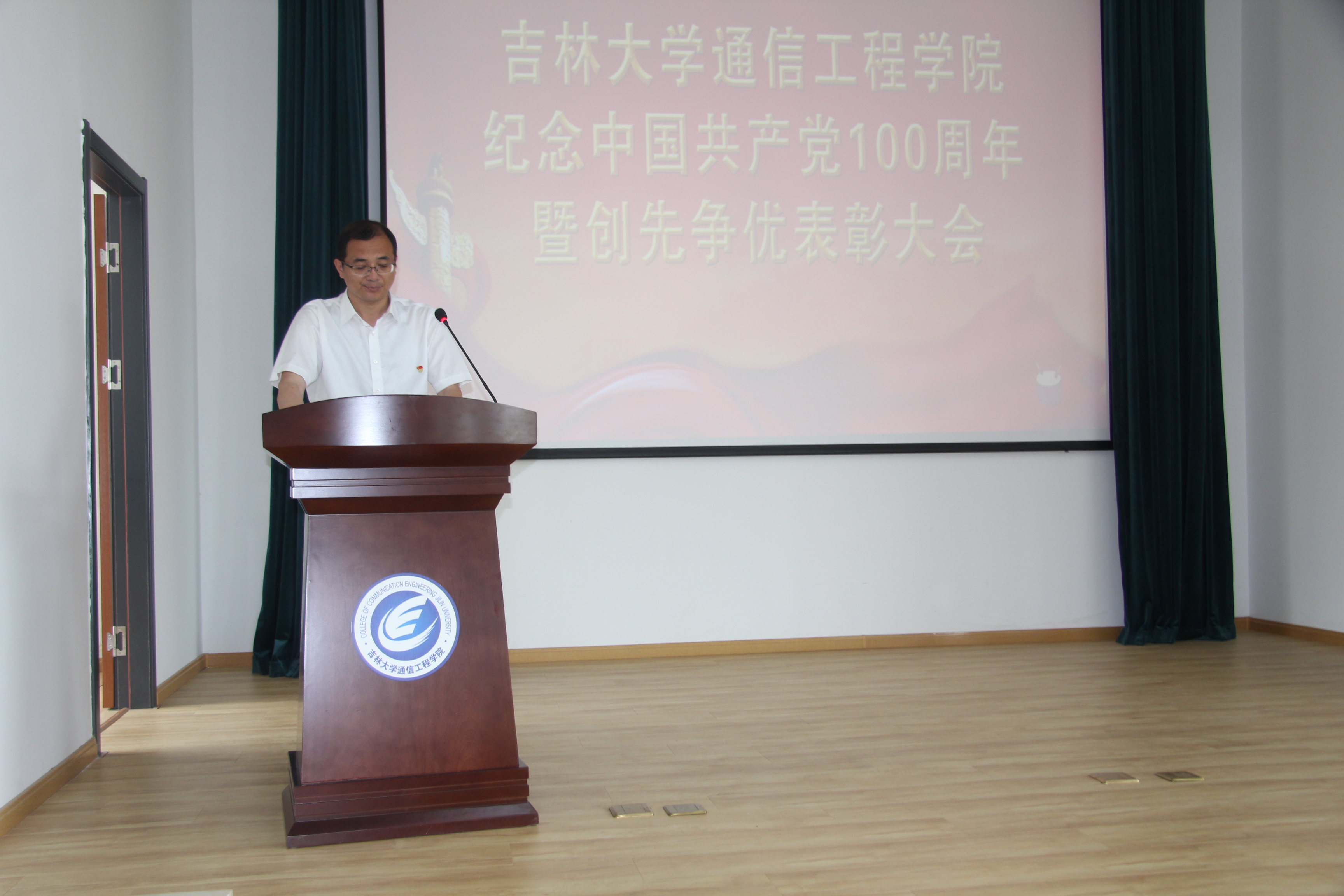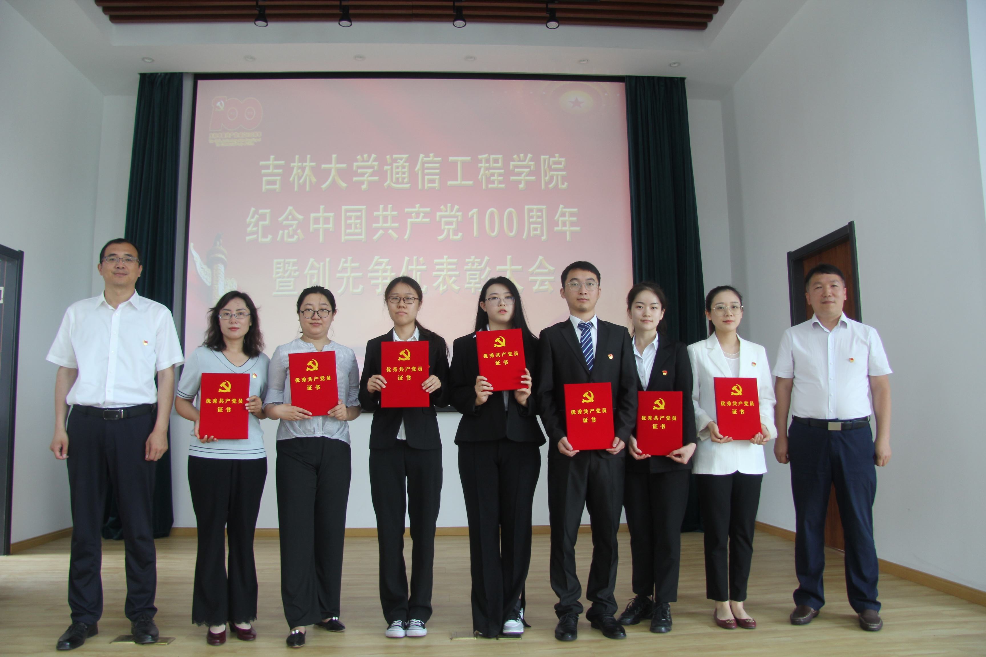 于南湖校区图书馆四楼报告厅隆重召开庆祝建党100周年暨创先争优表彰大会,表彰学院在工作岗位上有突出贡献的优秀共产党员、优秀党务工作者和先进基层党组织。参加会议的有学院全体教工党员,部分研究生、本科生党员代表,大会还邀请了班子成员中的党外人士和民主党派中的优秀代表参会。大会由学院党委副书记兼副院长柴华主持。