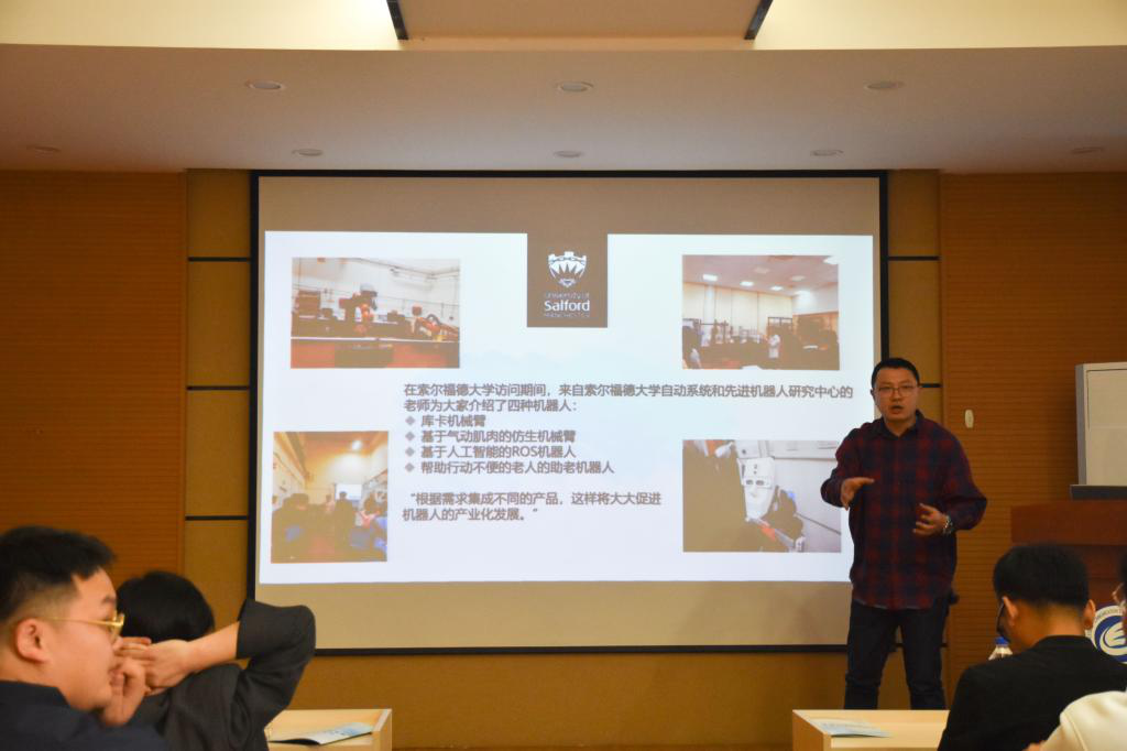 A report back session was successfully held in the Nanhu Campus conference room on April 19, following the short exchange program that saw CCE faculty and students visiting the UK as visiting scholars. The report back session aims to summarize what students experienced abroad with the rest of the college and to foster students' desire to broaden their horizon. The session was attended by Mr. Li Hongwei, Secretary of the Party Committee of CCE, Mr. Chai Hua, Deputy Secretary of the Party Committee, Mr. Wang Bo, director of the Student Office, as well as various members of the college undergraduate body.