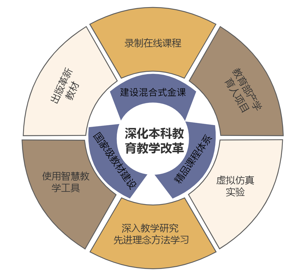 学院以“教育部新工科建设项目”为契机,全面落实“学生中心、产出导向、持续改进”理念,不断深化教学改革、创新人才培养模式。科学制定培养方案和课程教学大纲,关注教材、教学内容、教学方式和教学效果评价等内涵指标,全面梳理各门课程间的知识架构和逻辑关系;注重课程内涵建设、注重学科前沿知识更新、注重授课方式创新、注重信息化手段融入,持续推动“以学为中心、以教为主导”的课堂教学改革;打造具有高阶性、创新性和挑战度的“金课”,提升课程对专业培养目标和毕业要求的支撑度,发挥优质课程在课程思政、混合式教学、信息技术应用、教学评价考核、教学资源配置以及科研转化教学等方面的示范引领作用。四门课程获评为国家级一流本科课程,四门课程获评为省级一流本科课程。