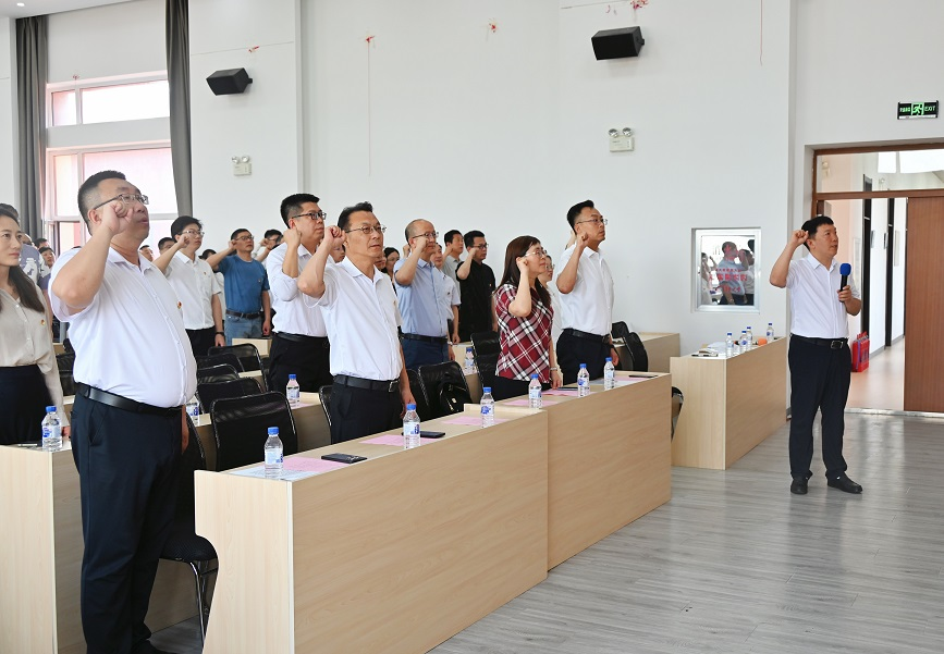 在师生们激昂的国歌声中,本次活动拉开帷幕。首先,副院长胡封晔同志带领与会党员重温入党誓词。新老党员面对鲜红的党旗,庄严地举起右拳宣誓,声音铿锵而豪迈。