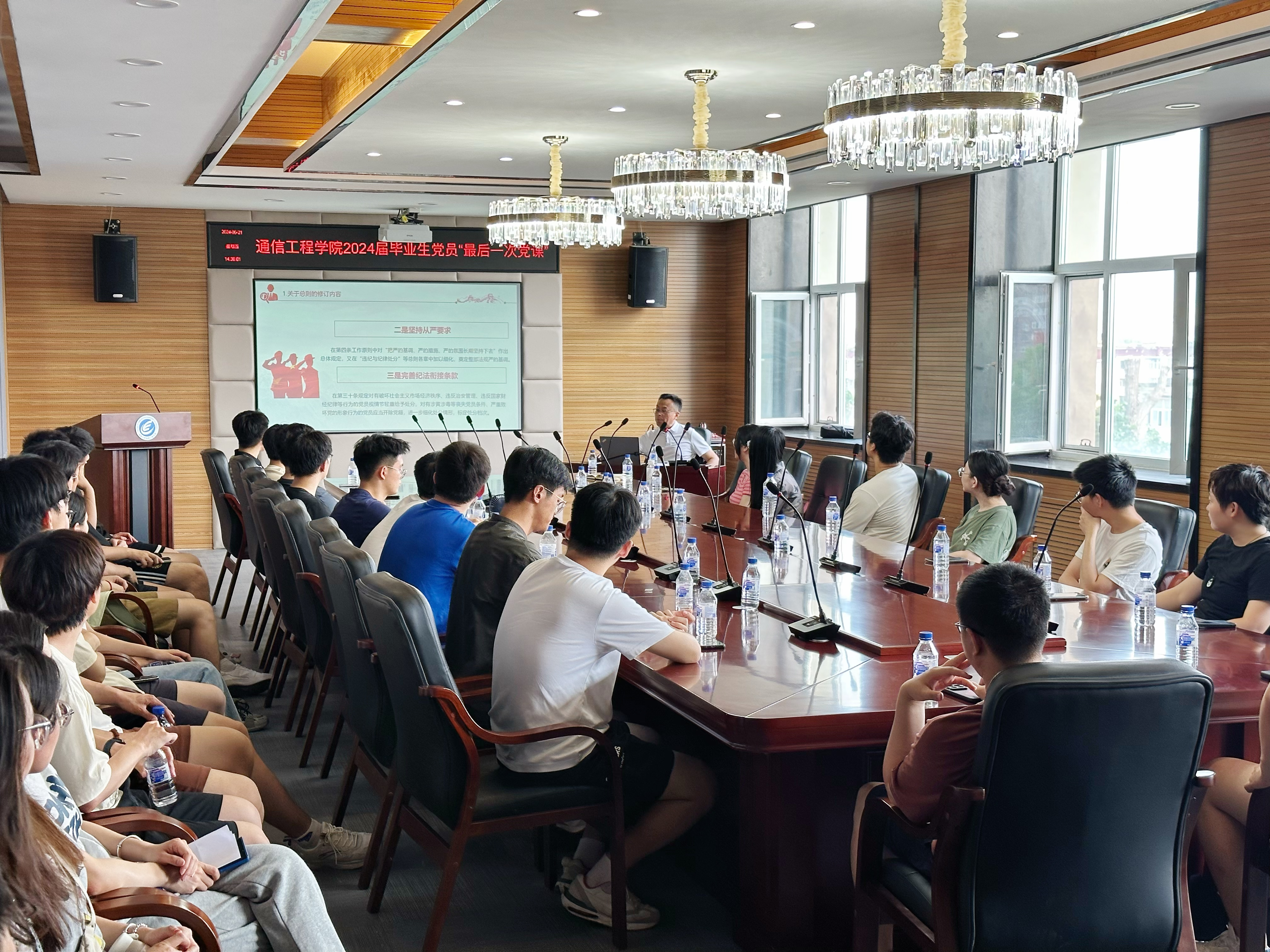 为深入贯彻落实习近平总书记关于党纪学习教育的重要讲话和指示精神,引导毕业生党员坚定理想信念,6月21日,抖阴视频 党委书记董宏志为2024届毕业生党员讲授“最后一次党课”,党课由学院党委副书记刘星彤主持。