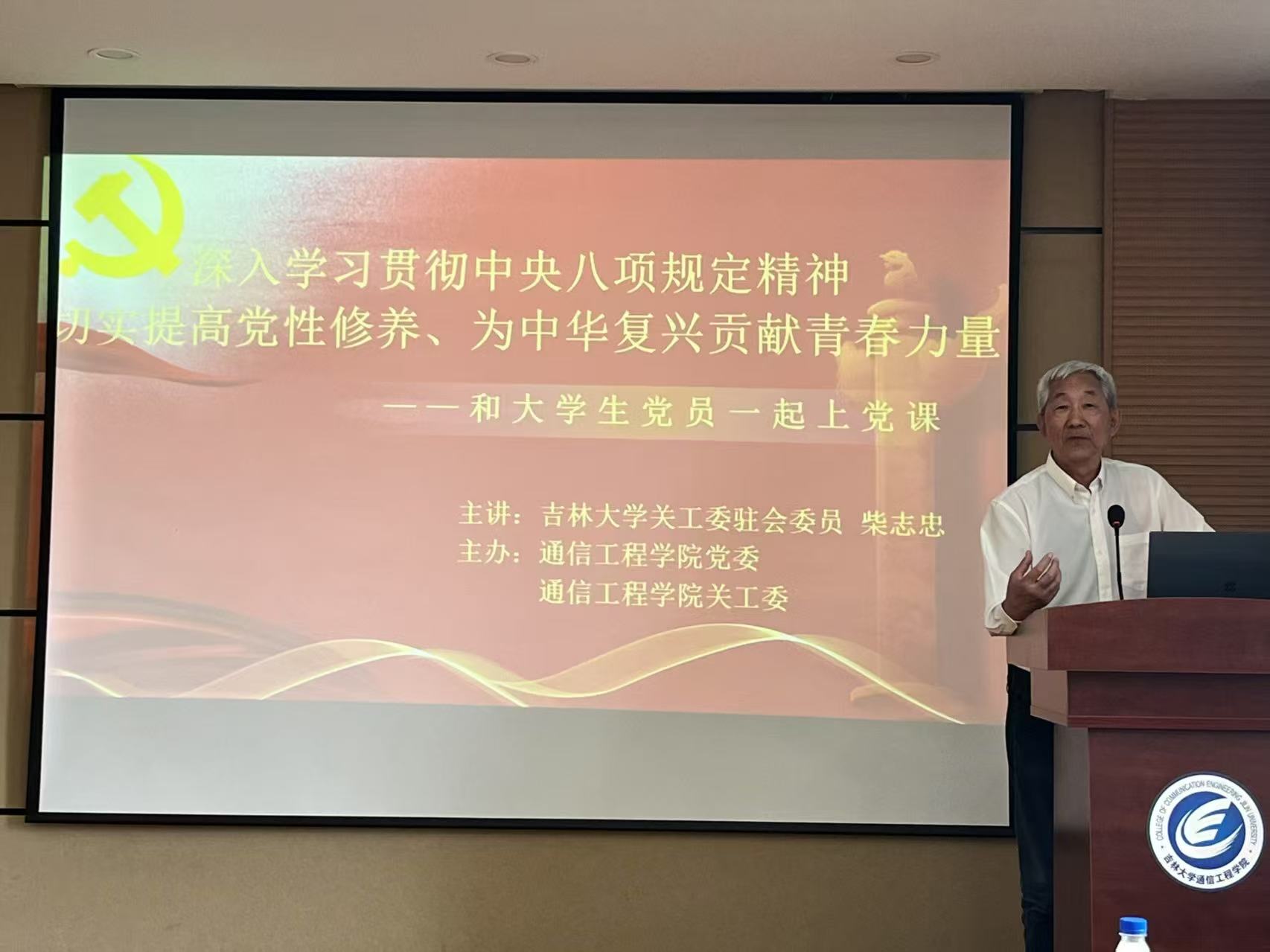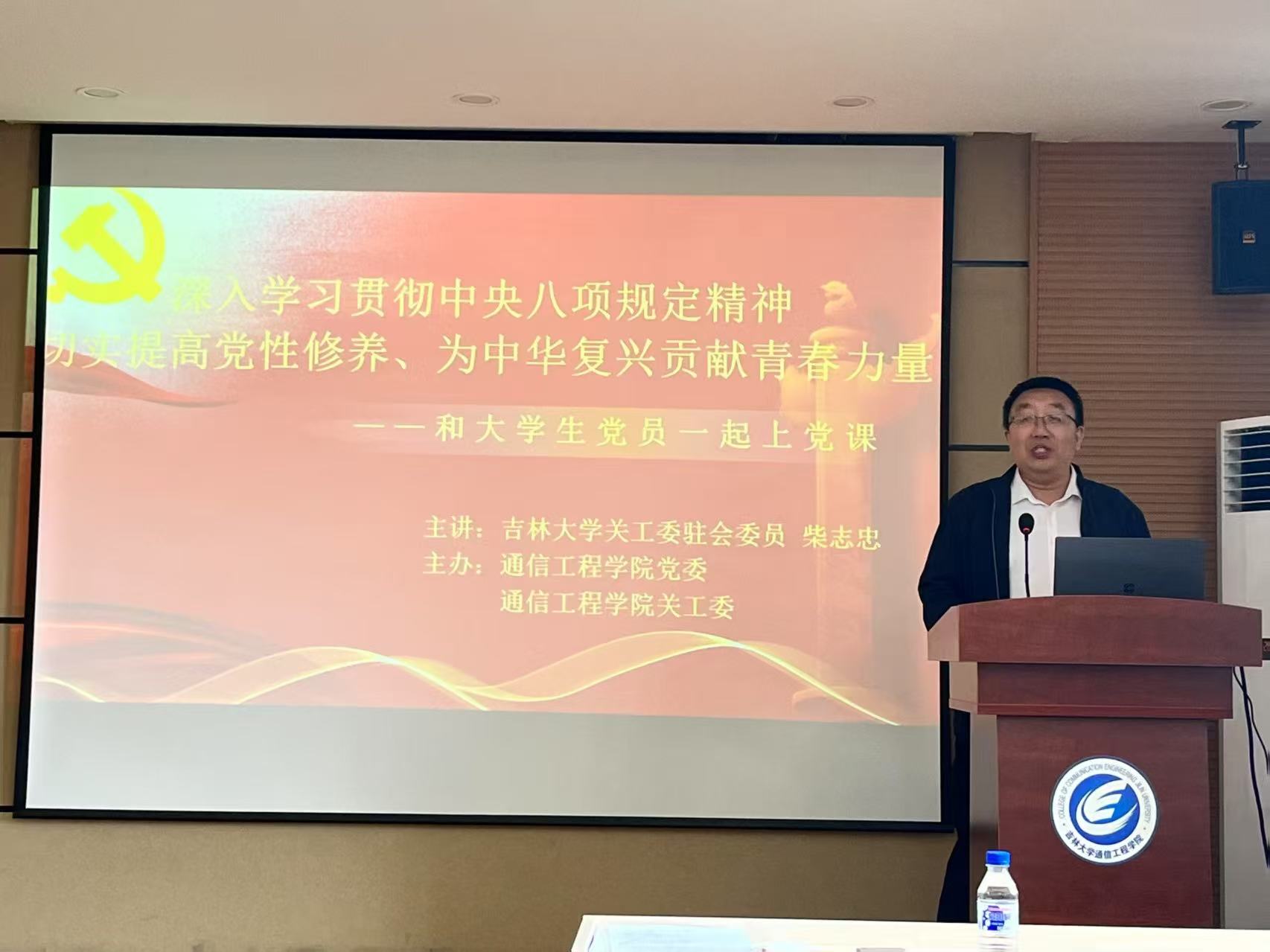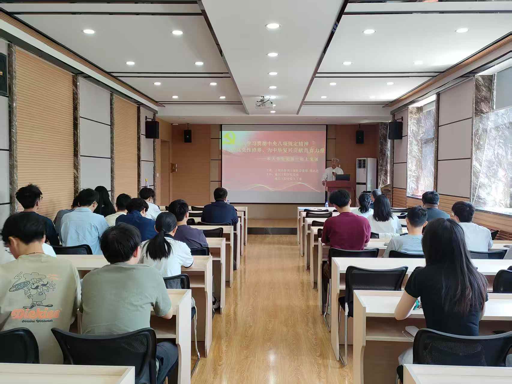 首先柴志忠老师,结合自身丰富的人生经历与深刻感悟,深入讲解了中央八项规定精神对党员修养以及民族复兴的重要意义。柴老师指出,党肩负着中华民族伟大复兴的历史使命,这就要求我们必须目标明确、战斗力充沛,不懈追求奋斗。我们党从西柏坡到天安门,中华民族从从站起来、富起来到强起来,党的战斗力与党风建设紧密相连。党风建设需正反两面同时发力、齐抓共管、警钟长鸣。他不仅给我们提供了一些从党风教育的反面案例,还以诗歌的形式深情回顾了党的百年光辉历程。他还以当年美帝悍然轰炸我驻南斯拉夫大使馆的惨痛经历,以及现如今,我们硬钢美帝的生动事例,展现了党为国家和人民做出的巨大贡献,以及当代大学生肩负的历史责任。最后,柴老师殷切希望同学们以毕业为新的起点,深入学习中央八项规定精神,以此指导自己的行为规范,接住实现中华民族伟大复兴的接力棒。